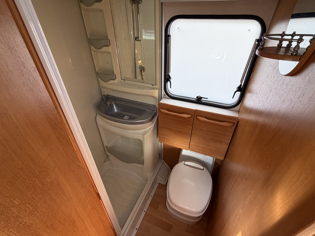 Vast bed, Keuken, Douche, Toilet, Luifel, Tv, Camera, Airco, Koelkast, Draaibare voorstoelen