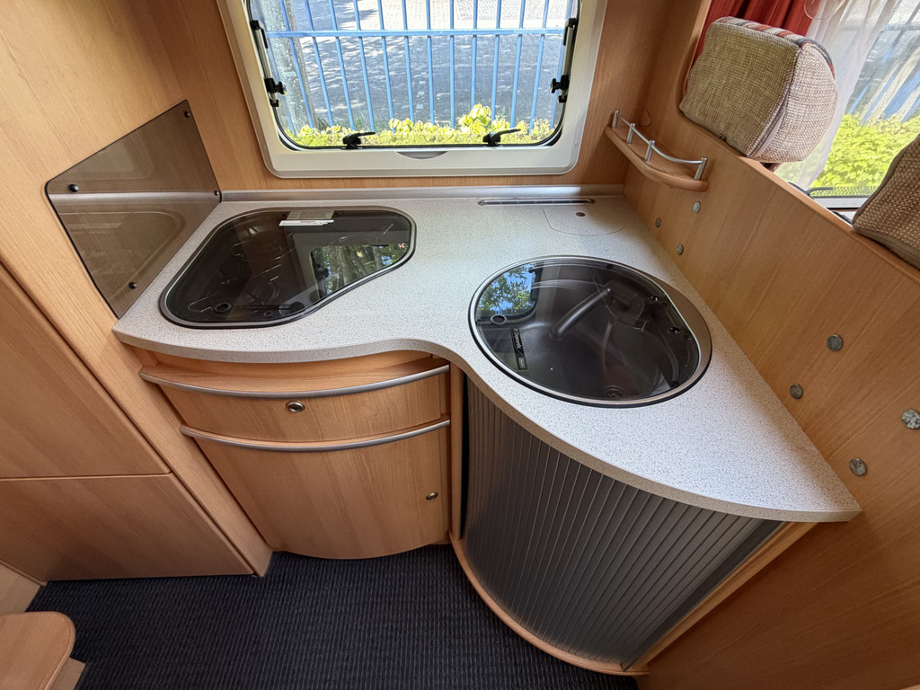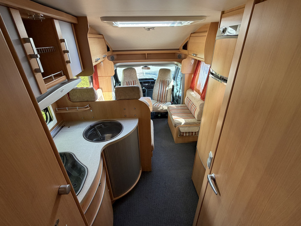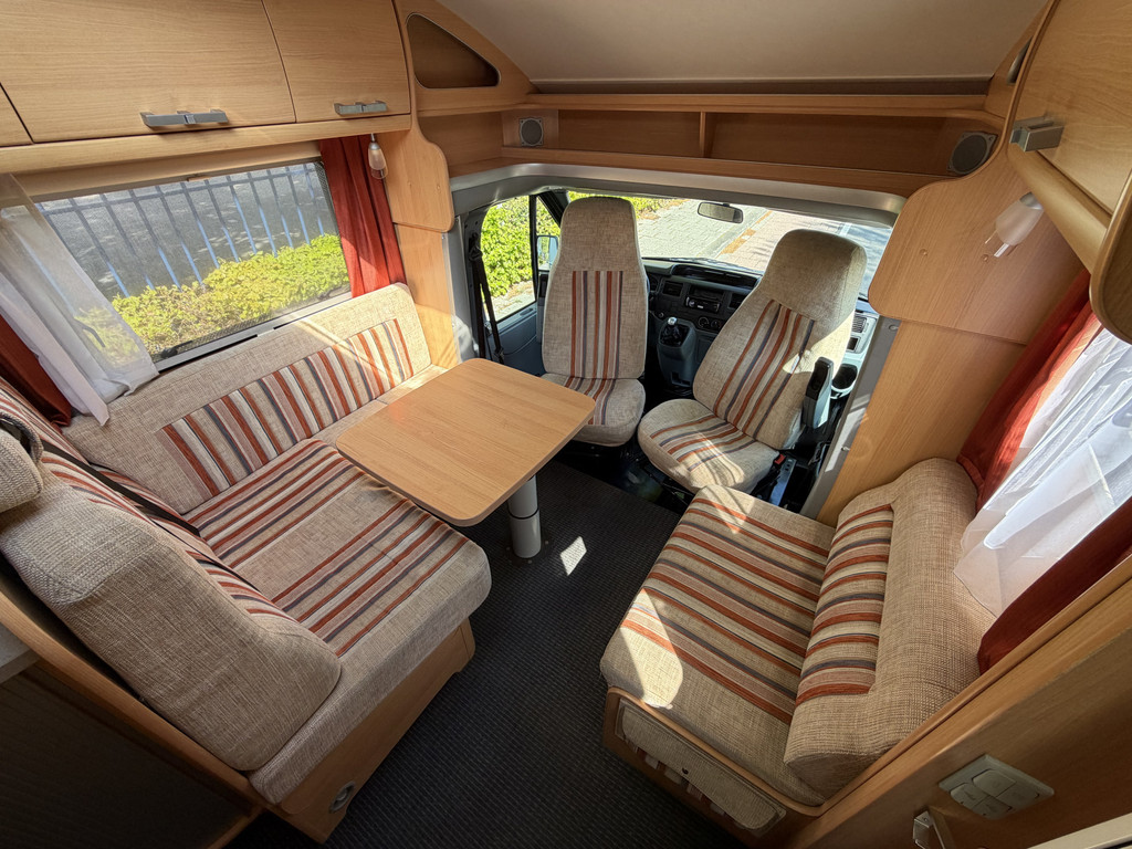 Vast bed, Airco,Koelkast, Toilet, Cruise control, Draaibare voorstoelen, Radio, Luifel