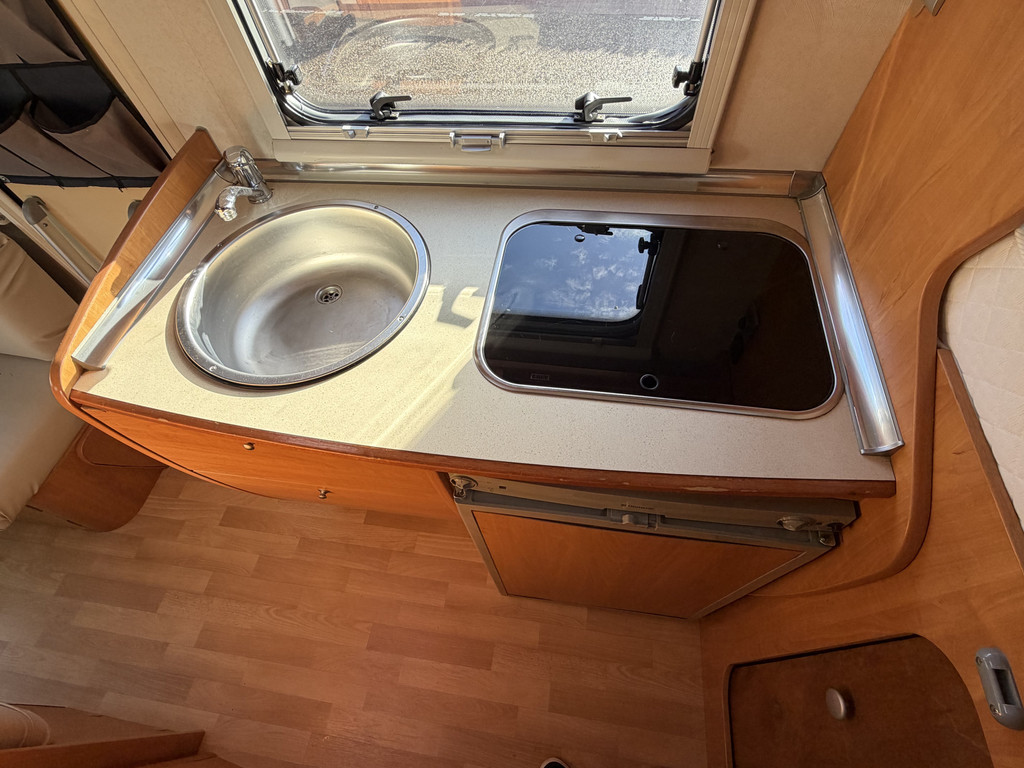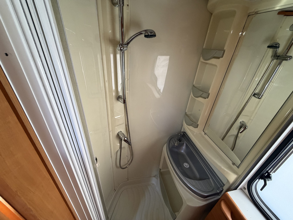 Vast bed, Keuken, Douche, Toilet, Luifel, Tv, Camera, Airco, Koelkast, Draaibare voorstoelen