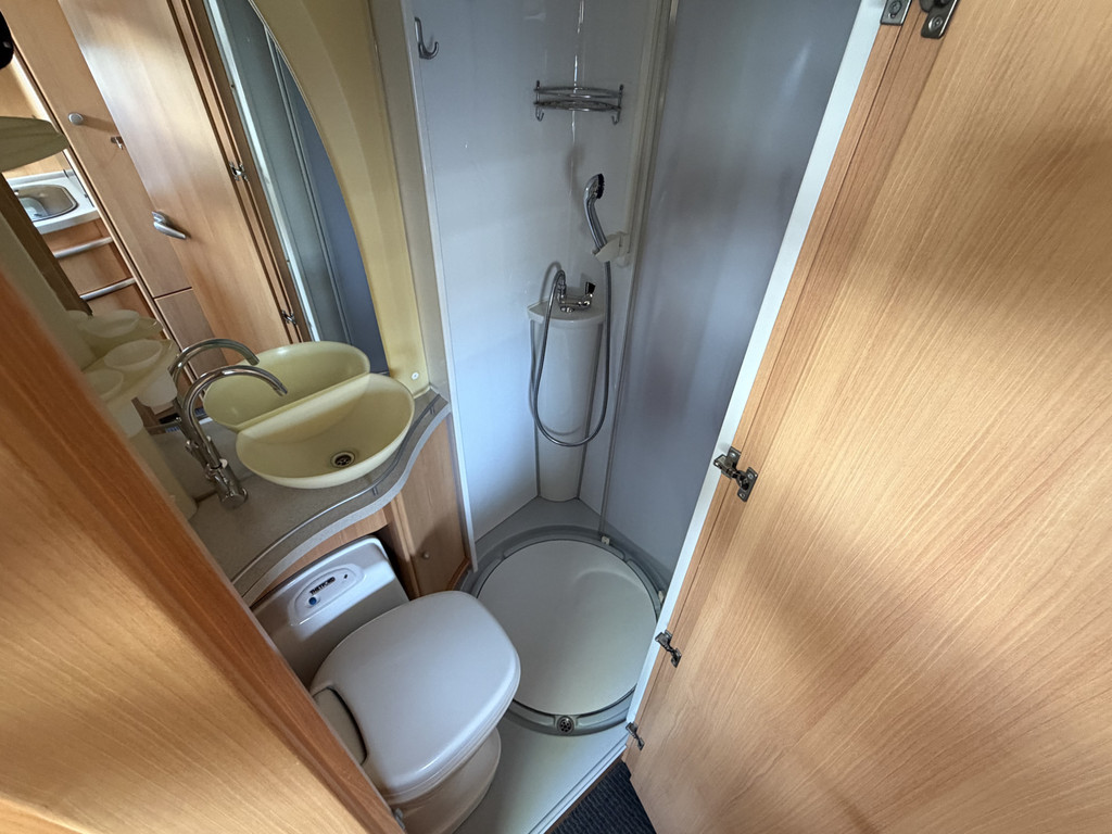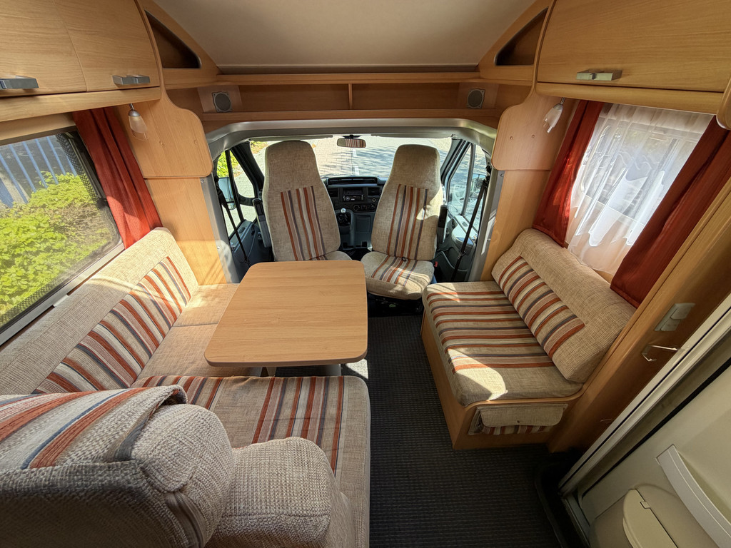 Vast bed, Airco,Koelkast, Toilet, Cruise control, Draaibare voorstoelen, Radio, Luifel
